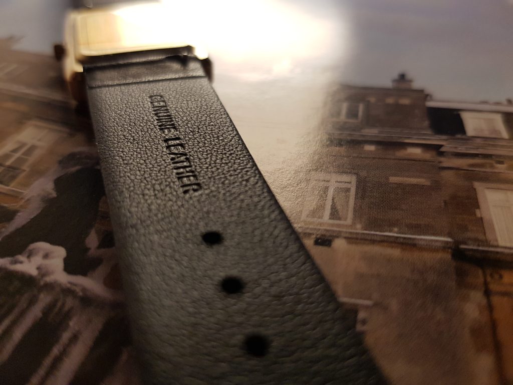 You get a genuine Italian Leather Strap with the watch. Supple, comfortable and perfect are the adjectives I will use to describe the strap. It wraps around the wrist well, and there are enough holes for smaller wrist. You can see the grains on the leather, if you inspect it closely. The buckle has been signed with the logo.