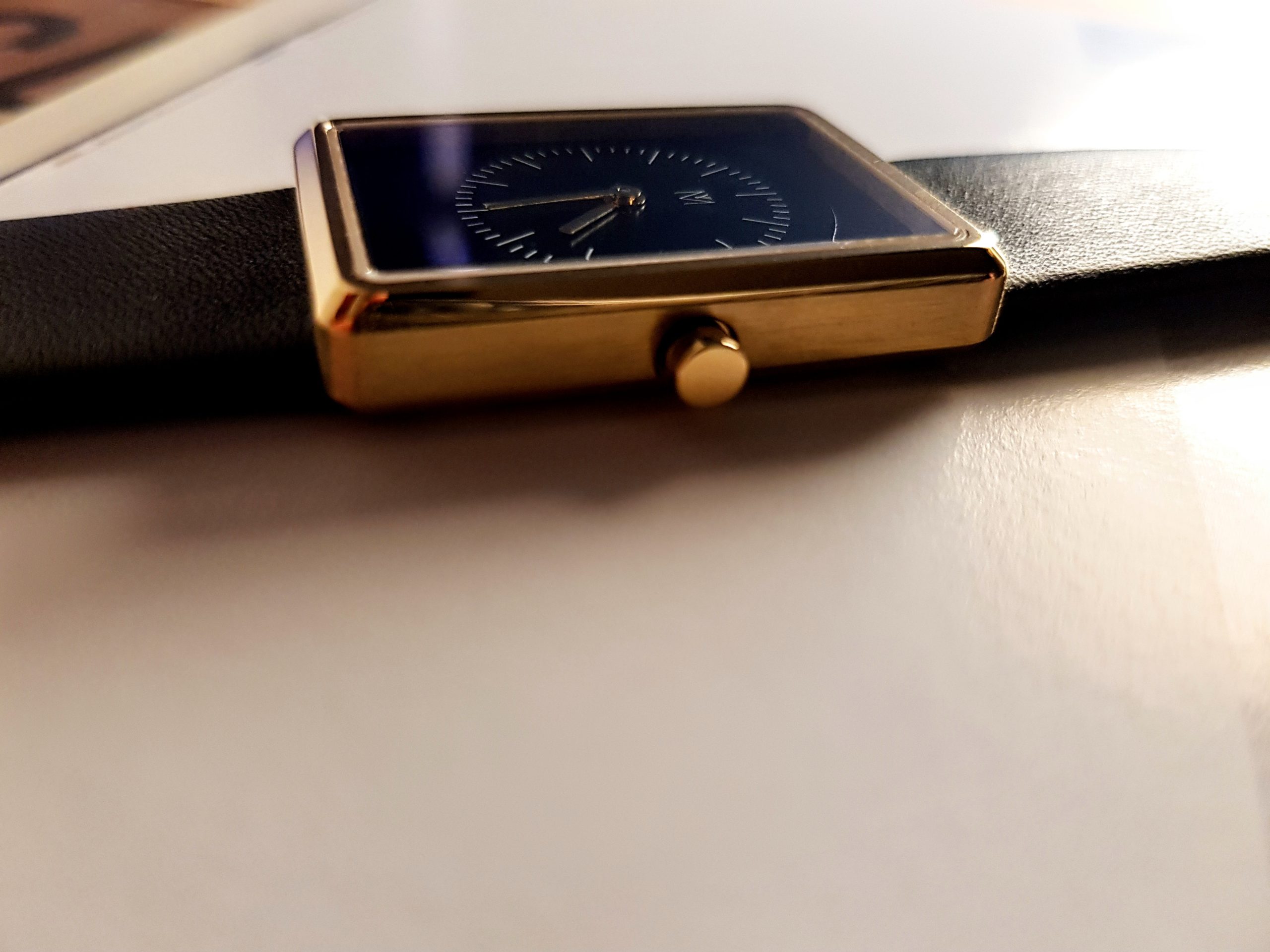 Love it. The Maven Watches Noir 26mm looks like a piece of a gold bar. The colour theme goes really well, the black and gold looks fantastic. The 34mm square casing with the 26mm dial inside looks very classy. So far we are looking the Noir.